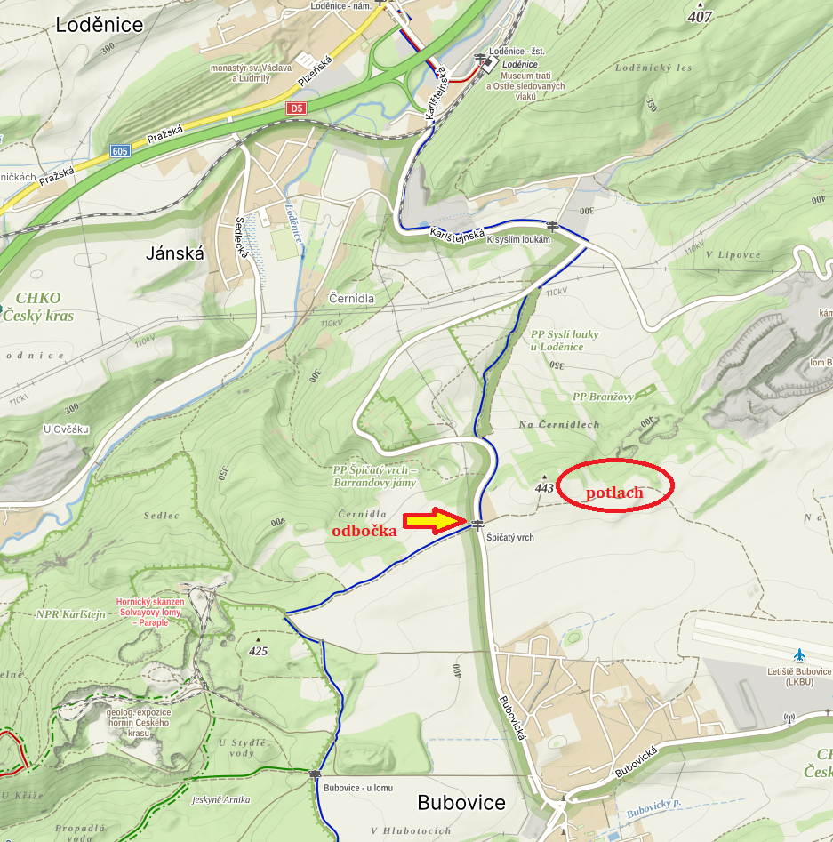 Jak se dostat na potlach při obci Bubovice u Berouna