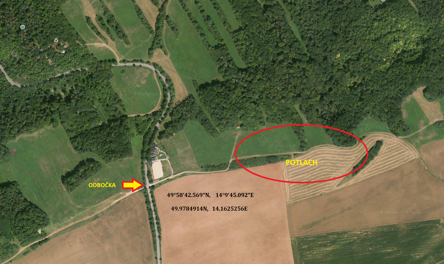 Pro tvoji lepší představu v prostorové orientaci je přiložena také mapa letecká se stejnými údaji.